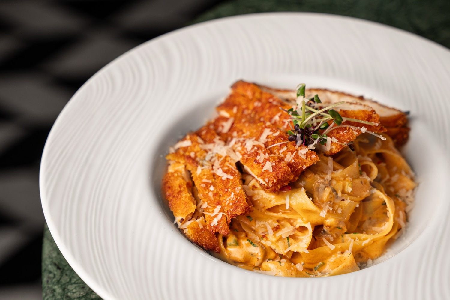 At Le Flament Rose, we honor Italian culinary heritage while embracing the sophistication of Dubai Creek Harbour. Our chefs combine traditional techniques with contemporary presentation, creating best pasta dishes that feel both timeless and modern.